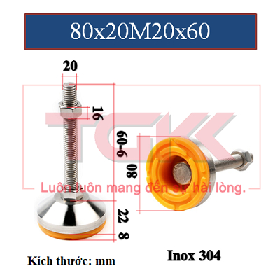 Chân đế chịu lực inox 304 80x20M20x60