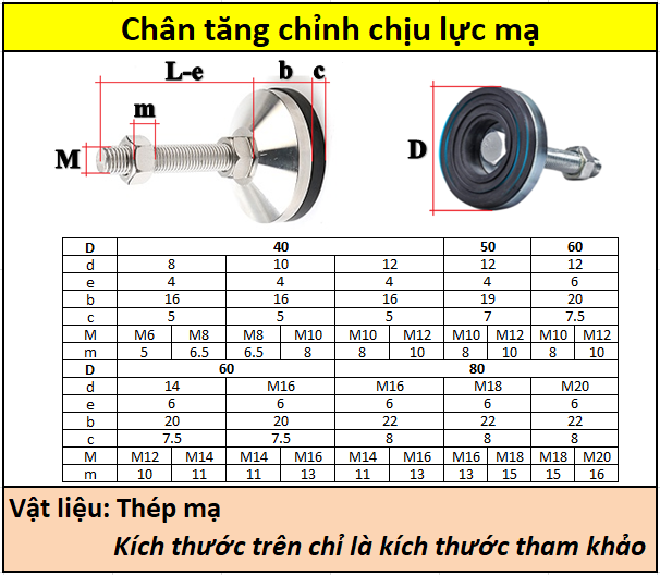 Chân đế chịu lực mạ niken 80x18M18x50 |