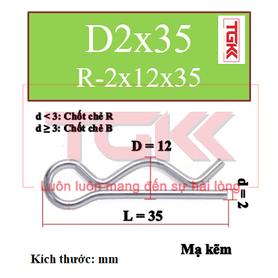 Chốt chẻ R mạ-D2x35