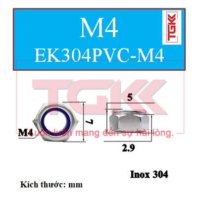 Đai ốc khóa PVC inox 304-M4
