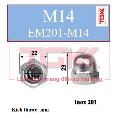 Đai ốc mũ inox 201-M14
