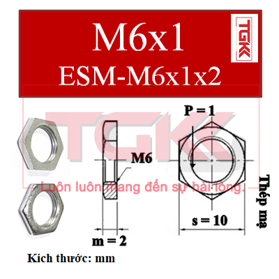 Đai ốc siêu mỏng mạ CL10-M6x1x2