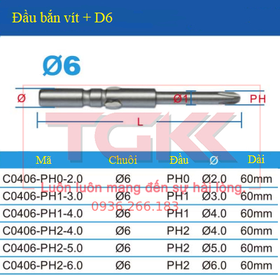 Đầu bắn vít + C0406*60*6*15-PH0 |