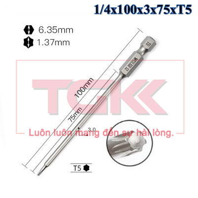 Đầu bắn vít hoa thị 1/4x100x3x75xT5