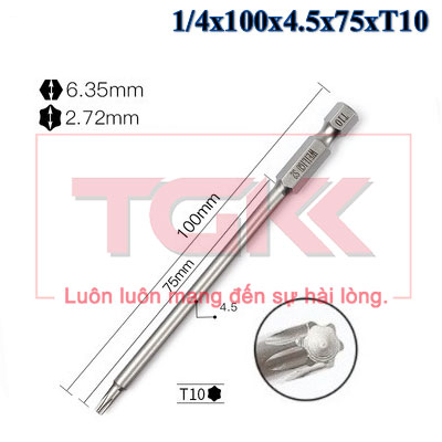 Đầu bắn vít hoa thị 1/4x100x4.5x75xT10