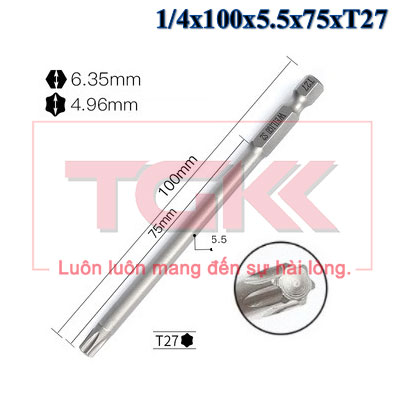 Đầu bắn vít hoa thị 1/4x100x5.5x75xT27