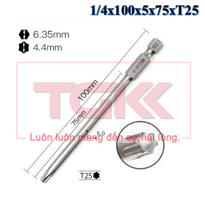 Đầu bắn vít hoa thị 1/4x100x5x75xT25