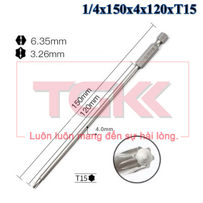 Đầu bắn vít hoa thị 1/4x150x4x120xT15