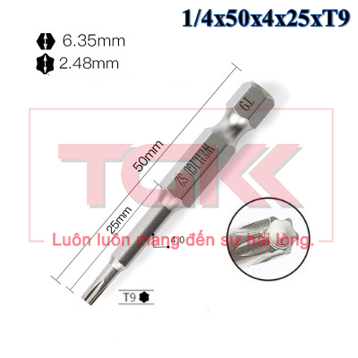 Đầu bắn vít hoa thị 1/4x50x4x25xT9