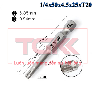 Đầu bắn vít hoa thị 1/4x50x4.5x25xT20