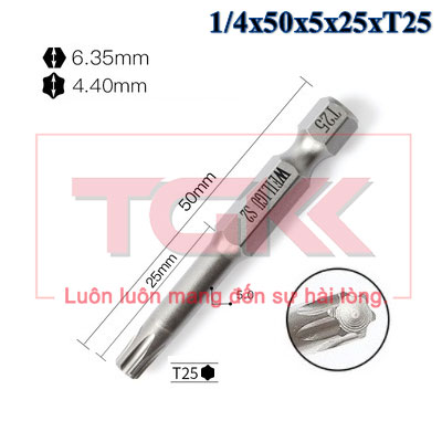 Đầu bắn vít hoa thị 1/4x50x5x25xT25
