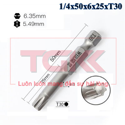 Đầu bắn vít hoa thị 1/4x50x6x25xT30