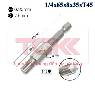 Đầu bắn vít hoa thị 1/4x65x8x35xT45