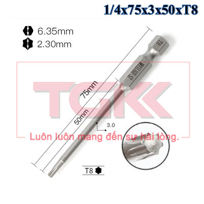 Đầu bắn vít hoa thị 1/4x75x3x50xT8