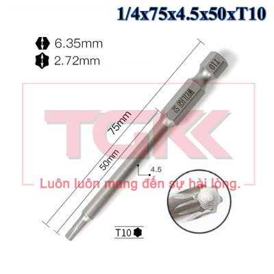 Đầu bắn vít hoa thị 1/4x75x4.5x50xT10