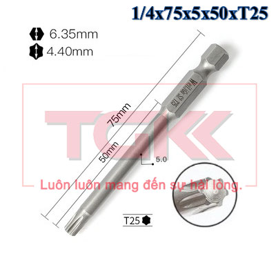 Đầu bắn vít hoa thị 1/4x75x5x50xT25