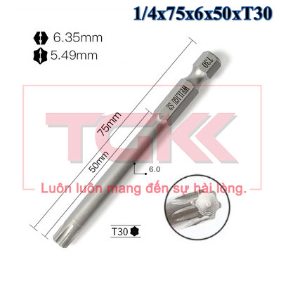 Đầu bắn vít hoa thị 1/4x75x6x50xT30