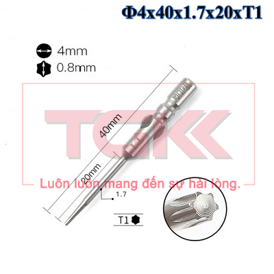 Đầu bắn vít hoa thị Ф4x40x1.7x20xT1