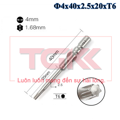 Đầu bắn vít hoa thị Ф4x40x2x20xT6