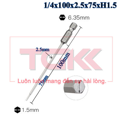 Đầu bắn vít lục giác 1/4x100x2.5x75xH1.5