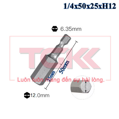 Đầu bắn vít lục giác 1/4x50x25xH12