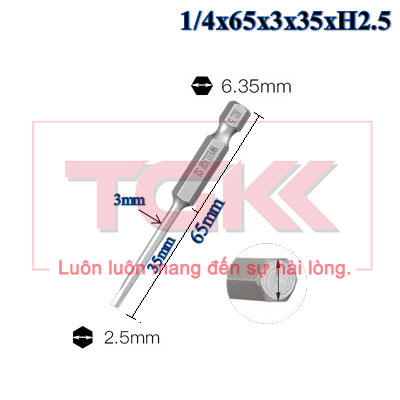 Đầu bắn vít lục giác 1/4x65x3x35xH2.5