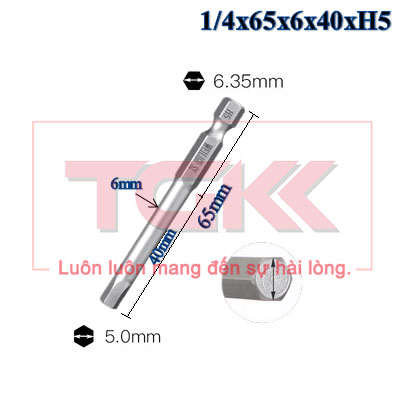 Đầu bắn vít lục giác 1/4x65x6x40xH5.0