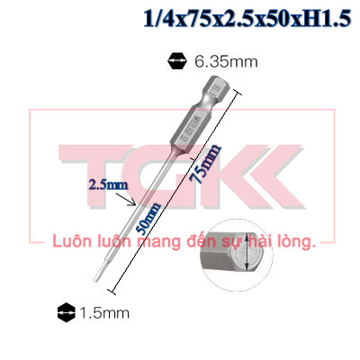 Đầu bắn vít lục giác 1/4x75x2.5x50xH1.5