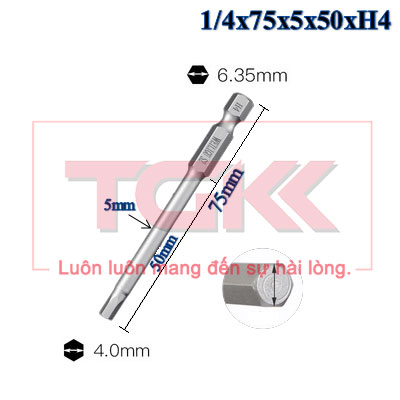 Đầu bắn vít lục giác 1/4x75x5x50xH4.0