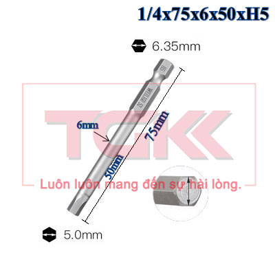 Đầu bắn vít lục giác 1/4x75x6x50xH5.0