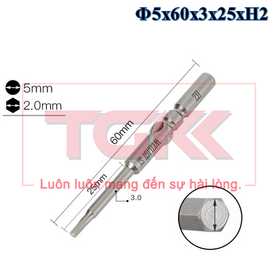 Đầu bắn vít lục giác Ф5x60x3x25xH2.0