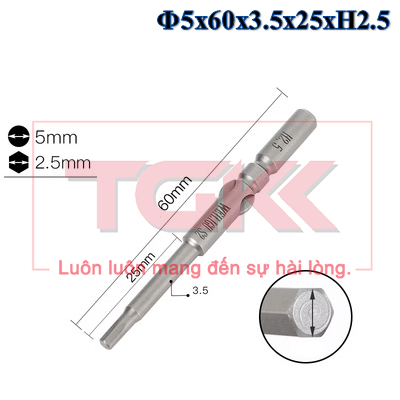 Đầu bắn vít lục giác Ф5x60x3.5x25xH2.5