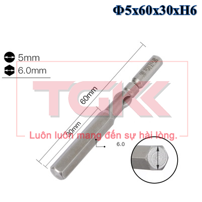 Đầu bắn vít lục giác Ф5x60x30xH6