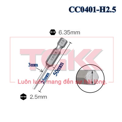 Đầu bắn vít lục giác C0401-1/4*50*3*25*H2.5