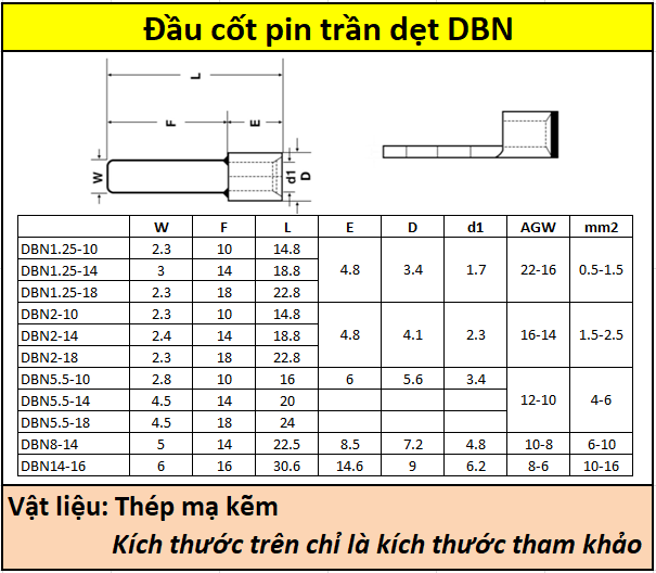 Đầu cốt pin trần dẹt DBN1.25-14 |