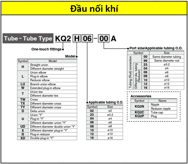 Đầu nối khí thẳng KQ2H06-00A |