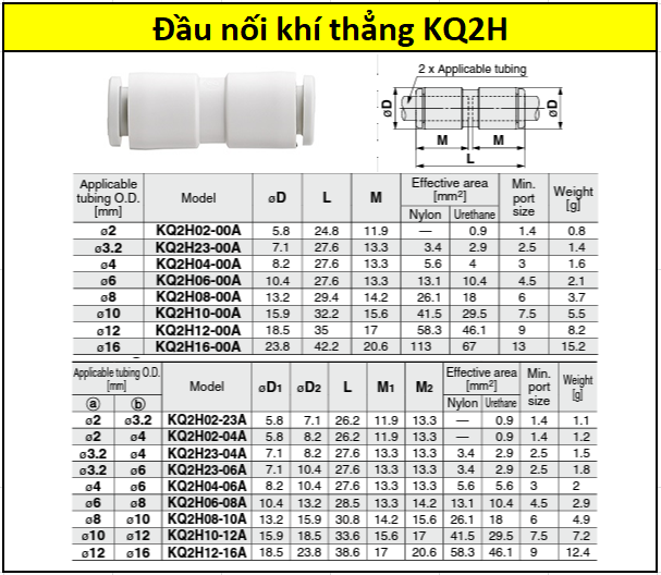 Đầu nối khí thẳng KQ2H10-00A |