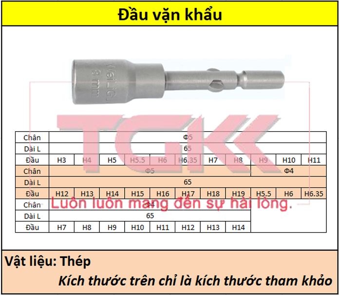 Đầu vặn khẩu Ф5x65xH6.35 |