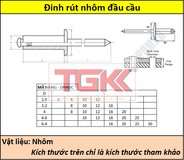 Đinh rút nhôm đầu cầu D2.4x6 |
