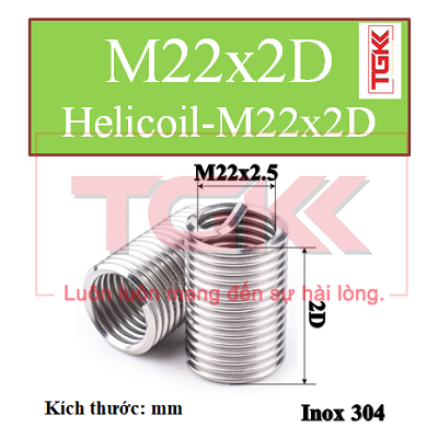 Ren cấy Helicoil M22x2.5x2d (44mm) sus304