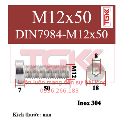 Lục giác chìm đầu mỏng inox 304-M12x50 DIN7984