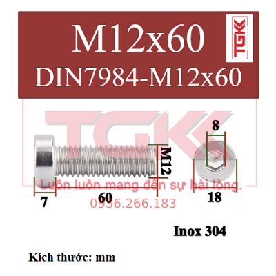 Lục giác chìm đầu mỏng inox 304-M12x60 DIN7984
