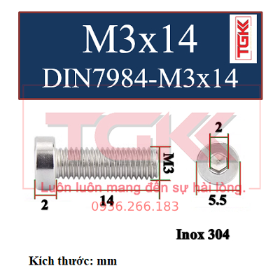 Lục giác chìm đầu mỏng inox 304-M3x14 DIN7984