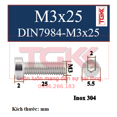 Lục giác chìm đầu mỏng inox 304-M3x25 DIN7984