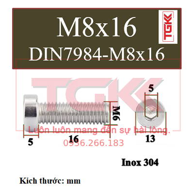 Lục giác chìm đầu mỏng inox 304-M8x16 DIN7984