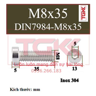 Lục giác chìm đầu mỏng inox 304-M8x35 DIN7984