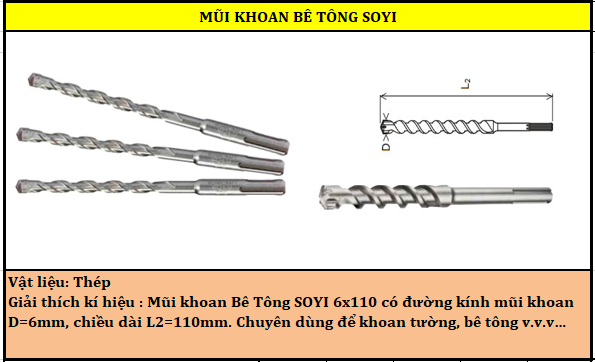 | Mũi khoan BT Soyi 6x110 | 10.000₫ | 0 đ | ||