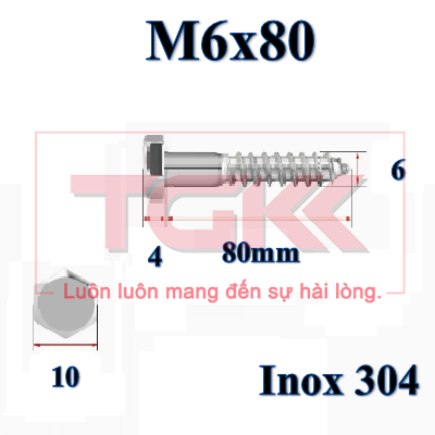 Vít giác inox 304-M6x80