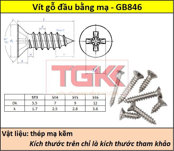 Vít gỗ đầu bằng mạ-ST4x16 GB846 |