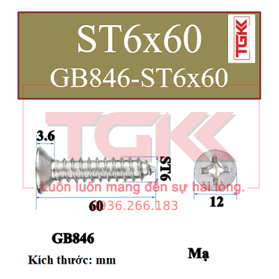 Vít gỗ đầu bằng mạ-ST6x60 GB846